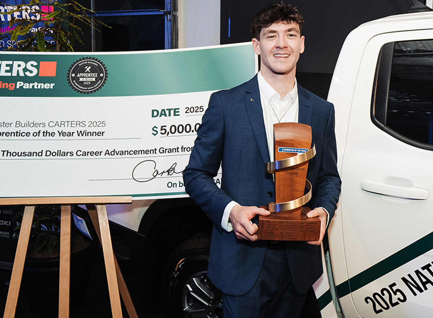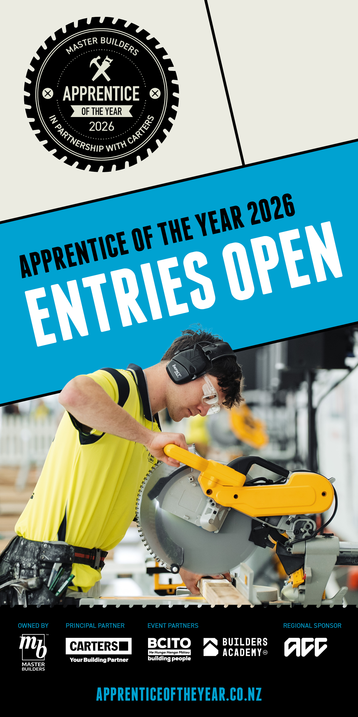 Roll up, apprentices! It’s time to back yourself by putting your name, or that of a star apprentice on your site, forward for the 2026 Master Builders Apprentice of the Year, in partnership with CARTERS.