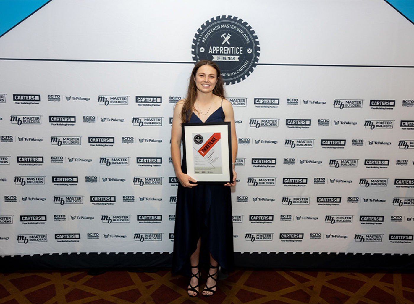 Waikato-based builder Jess Nielsen made history late last year as the first woman to place in the 2023 Registered Master Builders CARTERS Apprentice of the Year competition.